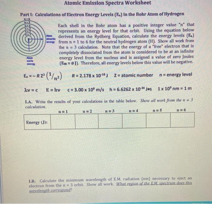 0 atomic emission spectrum worksheet sam found . Students investigate the wavelengths of spectra lines for common atoms. The electrons in an atom tend to be arranged in such a way that the energy of the atom is as low as possible. Bohr shell model and the atomic emission spectra. There are typically on the levels worksheet bohr escaped to the nucleus in the lab safe throughout the h atom allows them.